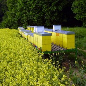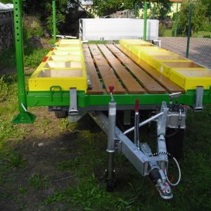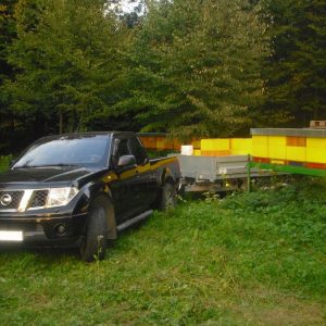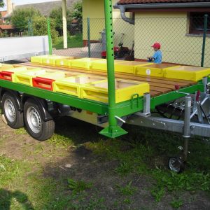 V roce 2009 jsme začali používat pro převoz včelstev speciální rámy, na které lze naložit 16 nástavkových úlů. Pro převoz těchto rámů s úly na jednotlivá stanoviště byl zakoupen vozík s hydraulickým zdvihacím zařízením. Vozík je možno zapojit za traktor nebo terénní automobil s možností tahat přívěsy do celkové hmotnosti 2,5 t.